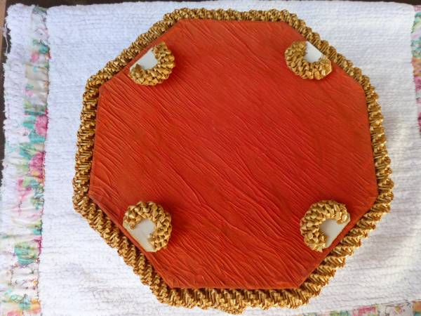 Antique RARE Octagonal Victorian Basket with Handle and Tufted Silk Lining ***Mint Condition 9" L 9" W 5" H $65-
