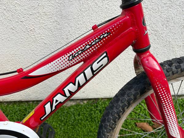 20” Jamis Lazer BMX bike. Upgraded hand brake, grips, saddle, and seat post. Tires have great tread left. Removable kickstand and chain protector. Awesome bike. My son just grew out of it.