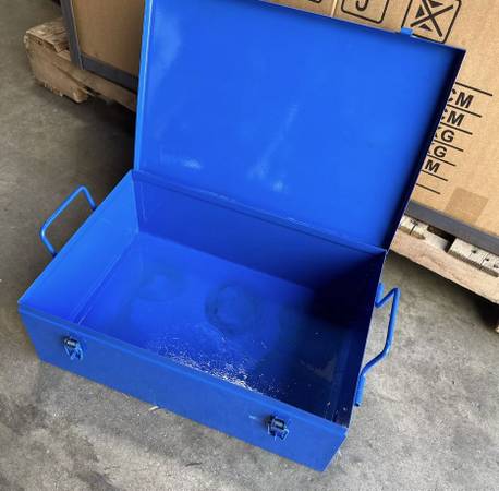 BRAND NEW PLEASE CALL OR TEXT Metal Tool Box Portable carry Tool Box Organizer, Hip Roof Style Portable Steel Tool Box with Metal Latches Closure for Tools Storage approx inner 15-1/4”x 10”x 5-1/4”...