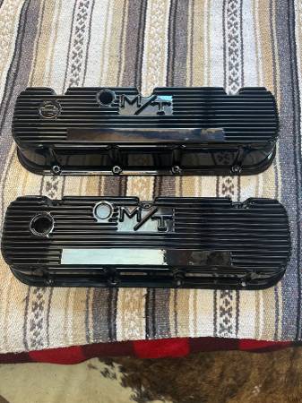 Pair of vintage Mickey Thompson valve covers in excellent condition. Have the Chevrolet emblem on them. They have been powdered coated black. $380