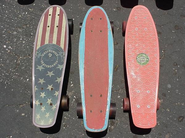 Nice collection of 8 Penny style skateboards all around 22"-23" long. A couple are wood and the others are hard plastic? A couple are new or near new and the others are in good condition with some very collectable. Have sold a couple so call to see what we have currently. Penny, Kriptonics, Sex Wax, Redo and Maui names.. Grandsons and friends collection wants to sell all together or $25 each. see pictures. Call eight05-964-1251 to see not text.