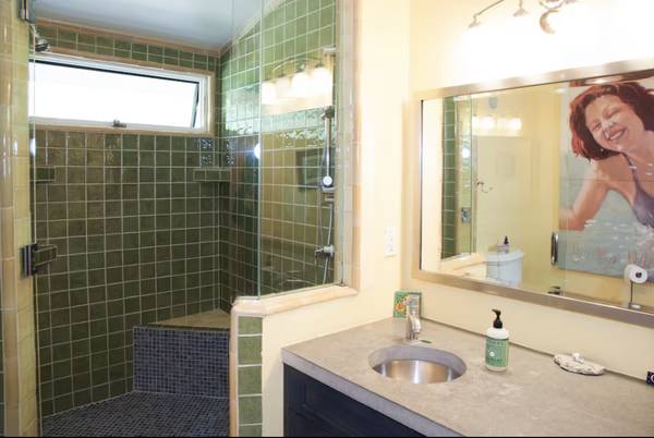 A true home... soulful with wood floors, a two headed hand tiled shower, organic California king mattress, claw foot bath tub off the back deck outside, a chef's kitchen and other good things you'd want in a dwelling, not to mention an UPRIGHT ACOUSTIC PIANO in the bedroom!