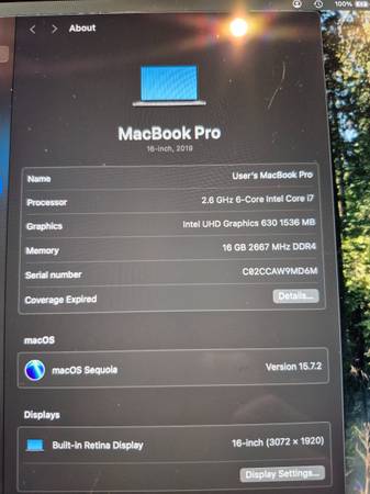 It’s in great condition – screen is perfect, keyboard is perfect, Touch Bar is perfect.