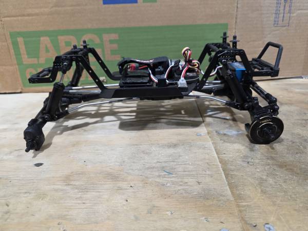 Im putting up for sale one of my favorite rc crawlers. This vehicle started life as an Element Enduro 12, but then received some upgrades in the form of Meus nylon portal axles w/ heavy Treal brass knuckles and portal weights and a Hobbywing Fusion Mini 16 motor/esc combo. The links were replaced with high clearance stainless steel links from Meus and the shocks are Desert Lizard style internal spring shocks from Powerhobby. The drive shafts are from a 1/10 Element Enduro and have been cut to accomodate the 300 mm wheelbase. I custom fit a set of Rock Pirates Ecto Sliders to this vehicle as well to give it support breaking over rocks. The servo is a DSServo 35KG axle mounted servo. It still has the body, chassis, and transmission from the original Enduro 12.